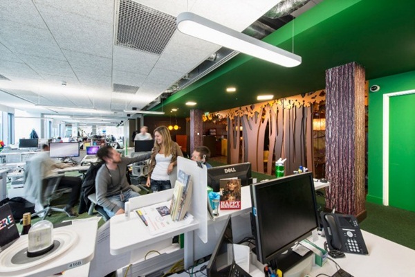 กลับมาอีกแล้วค่ะกับการพาคุณไปชมการตกแต่งออฟฟิศแจ่มๆ ของ Google ครั้งนี้เป็นออฟฟิศ Google ที่ดับลิน ตัวออฟฟิศตั้งอยู่บนอาคารสูงที่สุดในดับลิน ซึ่งออฟฟิศ Google แห่งนี้ถูกเรียกว่าเป็นสาขาใหญ่ของ Google สำหรับยุโรป ตะวันออกกลาง และแอฟริกาเลยล่ะค่ะ การตกแต่งภายในนั้นก็น่าทึ่งเหมือนเช่นเคย Google ไม่เคยทำให้เราผิดหวังกับการเยี่ยมชมออฟฟิศกันเลยทีเดียว ออกแบบภายในออฟฟิศนี้โดย Camenzind Evolution ภายในออฟฟิศตกแต่งสวยๆ ดูสนุกสนาน เต็มไปด้วยสีสัน สีของ Google เฟอร์นิเจอร์ตัวอักษร Google เก๋ไก๋ตั้งวางอยู่บริเวณด้านหน้าออฟฟิศ โดดเด่น ดึงดูดสายตาผู้ผ่านไปผ่านมาได้ดี ภายในมีทั้งส่วนที่เป็นออฟฟิศทำงานและบริเวณทำกิจกรรมคลายเครียดจากการงานให้กับพนักงานอย่าง สระว่ายน้ำ โรงยิม โต๊ะสนุ๊กเกอร์ ช่างเป็นออฟฟิศที่น่าทึ่งและใครเห็นต่างก็ยกให้เป็นออฟฟิศในฝันกันเลยจริงๆ ว่าไหมคะ ว่าแล้วเราไปชมออฟฟิศ Google แห่งนี้กันเลยดีกว่าค่ะ