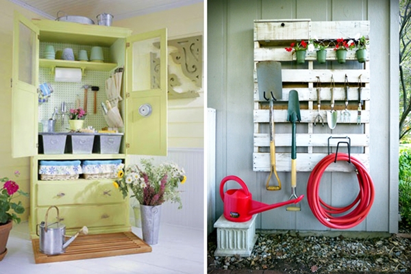ไอเดียที่ 1 เก็บอุปกรณ์ทำสวนไว้แขวนไว้กับไม้พาเลทเก่า หรือ ไว้ในตู้เก่าๆ สักใบ ก็เก็บของเป็นระเบียบ แถมหยิบใช้งานได้ง่ายขึ้นแล้วนะ