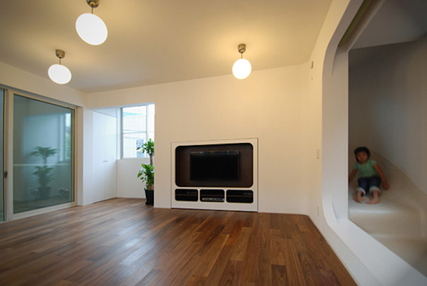 บ้านหลังนี้เป็นอีกแบบบ้านในญี่ปุ่นที่ตกแต่งภายในได้แปลกแต่เราก็ชอบ ^^ เพราะภายในตัวบ้านโดยรอบเลยจะมีสไลด์เดอร์อยู่ ให้คุณสามารถเลื่อนไถลตัวลงมาจากชั้นบนลงสู่ชั้นล่างได้สนุกสนาน ดีไซน์ภายนอกตัวบ้านก็ดูแปลกตา ไม่เหมือนทั่วไปด้วย สวยและน่าอยู่ไม่น้อยเลยล่ะค่ะ