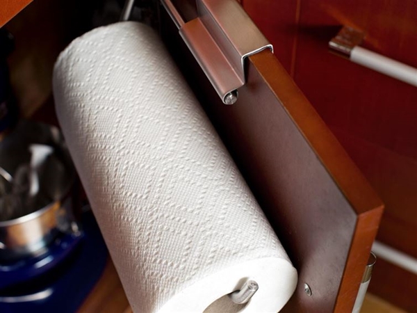 วิธีที่ 11 เพิ่มพื้นที่แขวนกระดาษทิชชูเอาไว้ในบานตู้เก็บของแบบนี้ก็ได้นะ ได้ใช้บานตู้ให้เป็นประโยชน์ แล้วมีพื้นที่เก็บของเพิ่มขึ้น