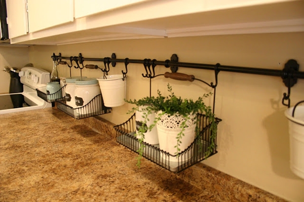 วิธีที่ 3 พื้นที่กำแพงระหว่างตู้เก็บของกับเคาน์เตอร์ก็ใช้ให้เป็นประโยชน์ หาราวแขวนของที่มีถาดใส่ของด้วยมาติดลงไป ก็ทำให้เรามีพื้นที่สำหรับเก็บอุปกรณ์เครื่องใช้ในครัวเพิ่มขึ้น