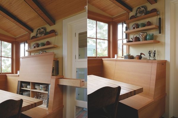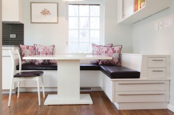 5. พนักเก้าอี้ม้านั่งในห้องรับประทานอาหาร ก็ทำเป็นที่ซ่อนเก็บของด้านหลังได้เหมือนกันนะ ถ้ารู้จักเลือกแบบดีไซน์จัดเก็บของม้านั่งดีๆ แบบนี้