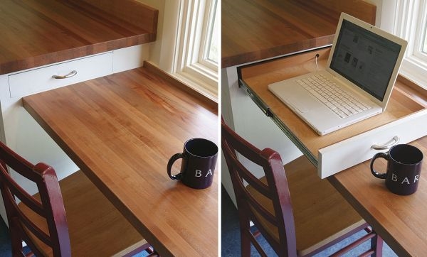 6. เพิ่มพื้นที่เก็บแล็บท็อปด้วยการใช้ลิ้นชักแบบนี้ก็เจ๋งไม่เบานะ เป็นการแบ่งพื้นที่ใช้สอย ในบริเวณเดียวกันให้มากขึ้น
