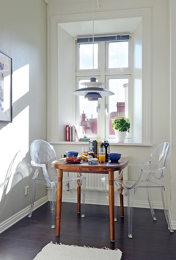 ใครอาศัยอยู่คอนโดมิเนียมกันบ้างคะ คอนโดมิเนียม มักมีพื้นที่ใช้สอยไม่เยอะเท่ากับบ้าน ยิ่งเป็นคอนโดห้องเล็กๆ ด้วยแล้วใหญ่ จะตกแต่งภายในยังไง ก็ต้องคิดให้ดีกันก่อน เดี๋ยวจับวางผิดที่ผิดทาง แล้วห้องจะออกมาดูรก อึดอัด ไม่น่าอยู่ไปซะเปล่าๆ ซึ่งนอกจากจะต้องคิดแล้วว่าห้องนั่งเล่น ห้องน้ำ ห้องครัว และห้องนอน ส่วนหลักๆ ของห้องเราจะตกแต่งอย่างไรกันดีแล้วนั้น มุมรับประทานอาหารก็เป็นอีกส่วนหนึ่งที่สำคัญที่เราต้องคิดกันด้วยเนอะ วันนี้เราก็เลยนำเอา 12 แบบไอเดียตกแต่งมุมรับประทานอาหารขนาดเล็กในคอนโด ที่ตกแต่งได้สวยงาม บรรยากาศสบายๆ น่านั่งสุดๆ มาฝากให้ชมกันเป็นไอเดียด้วยล่ะค่ะ ใครที่อยู่คอนโด หรือ มีบ้านขนาดเล็กๆ ลองมาชมไอเดียนี้ไว้ประยุกต์ใช้ตกแต่งกันนะคะ