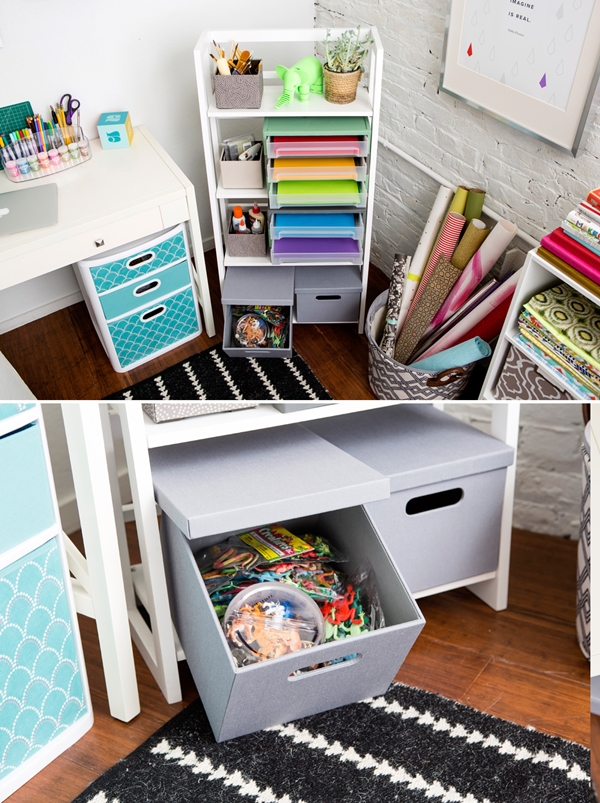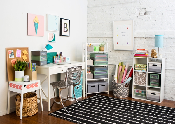 9. ตะกร้าเก็บของ : ถ้าต้องเก็บของใช้ กระดาษเขียนแบบ กระดาษห่อของขวัญ หรือ ม้วนกระดาษอื่นๆ อาจใช้ตะกร้าเก็บของมาช่วยจัดระเบียบตกแต่งในห้องทำงาน ทำให้ห้องดูเรียบร้อยและเป็นสัดส่วนมากขึ้นก็ได้