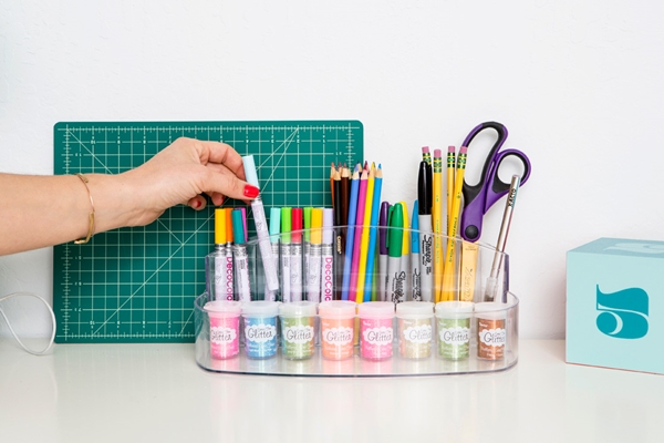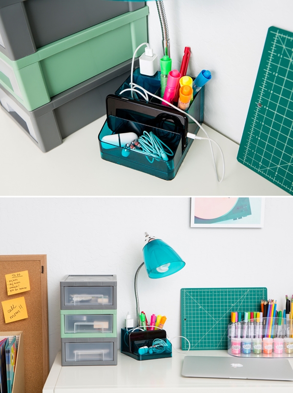 5. ที่เก็บเครื่องเขียน : หาที่เก็บเครื่องเขียนมาวางไว้บนโต๊ะทำงาน เก็บปากกาที่ต้องการใช้งานให้หยิบเอาง่ายๆ รวมไปถึงอุปกรณ์เครื่องเขียนอื่นๆ เช่น กรรไกร กาว หรือ ที่เย็บกระดาษ เป็นต้น