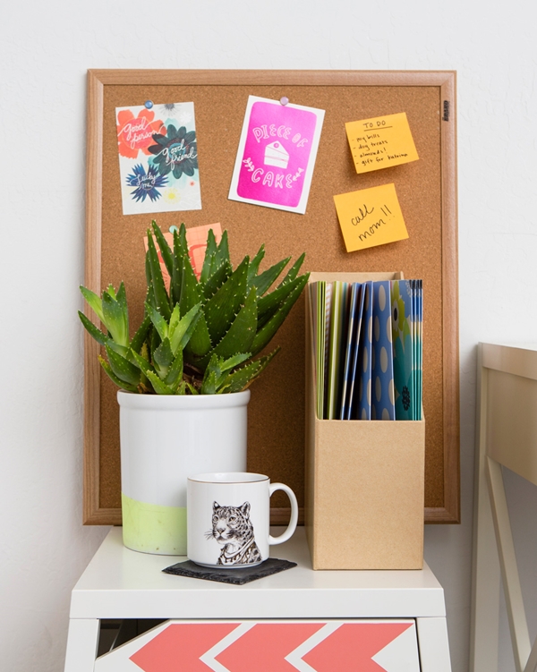 3. กระดานแปะกระดาษโน๊ต : มีไว้เวลาที่เราต้องการจดโน้ตหรือข้อความสำคัญต่างๆ เอาไว้ เวลาทำงานจะได้สะดวกรวดเร็วและเตือนตัวเราได้ดี รวมไปถึงยังสามารถใช้ติดภาพถ่ายตกแต่งโต๊ะทำงานให้มีกลิ่นอายความเป็นเราได้ด้วยค่ะ