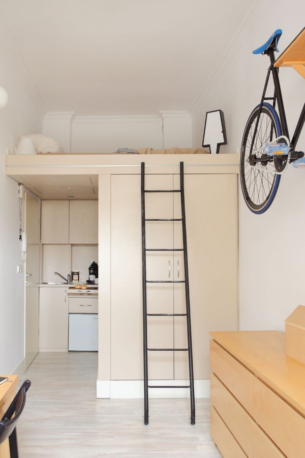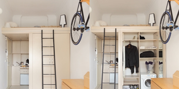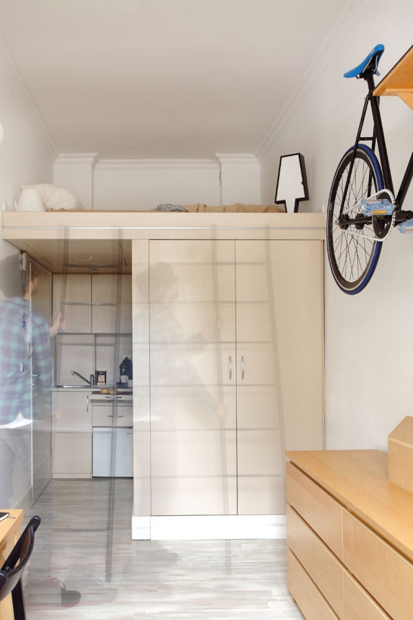 โดยบ้านเล็กๆ หลังนี้ เป็นอพาร์ทเม้นท์ของดีไซเนอร์ชาวโปแลนด์ที่มีชื่อว่า Szymon Hanczar ซึ่งเขาตกแต่งภายในห้องอพาร์ทเม้นท์ของตนเองให้ออกมาน่าอยู่ โดยฟิกทุกพื้นที่ภายในห้อง แบ่งเป็นชั้นลอยส่วนหนึ่ง สำหรับทำเป็นเตียงนอน มีบันไดลิงพาดผ่านตู้เสื้อผ้าสำหรับขึ้นไปยังบริเวณที่นอน ด้านในตู้เสื้อผ้าแบ่งเป็นที่เก็บเสื้อผ้าที่ใส่และเครื่องซักผ้าก็เก็บซ่อนไว้ด้านในด้วยเช่นเดียวกัน นอกจากนี้ด้านใต้บริเวณพื้นที่ชั้นลอย ก็แบ่งให้เป็นห้องครัวเล็กๆ สำหรับทำอาหารกินคนเดียวได้สบายๆ และห้องน้ำ