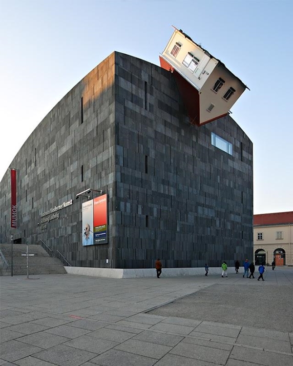8. อาคาร House Attack ที่มีบ้านกลับหัวอยู่บนหลังคา ที่เวียนนา ประเทศออสเตรีย