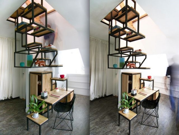 โต๊ะตัวนี้ก็เริ่ด เป็นไม่ต้องเปลืองเฟอร์นิเจอร์ เพราะเป็นโต๊ะที่เชื่อมกับบันไดของบ้าน ใช้เดินเป็นบันไดขึ้นข้างบนก็ได้ หรือ นั่งทำงานต่อไปก็ไม่มีใครว่า ไอเดียดีไม่เลวเลยล่ะ