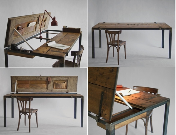โต๊ะรีไซเคิลประตูเก่า กิ๊บเก๋ กลายเป็นโต๊ะดีไซน์เท่ๆ เปิดบานพับขึ้นมาเก็บของได้ด้วยนะตัวนี้
