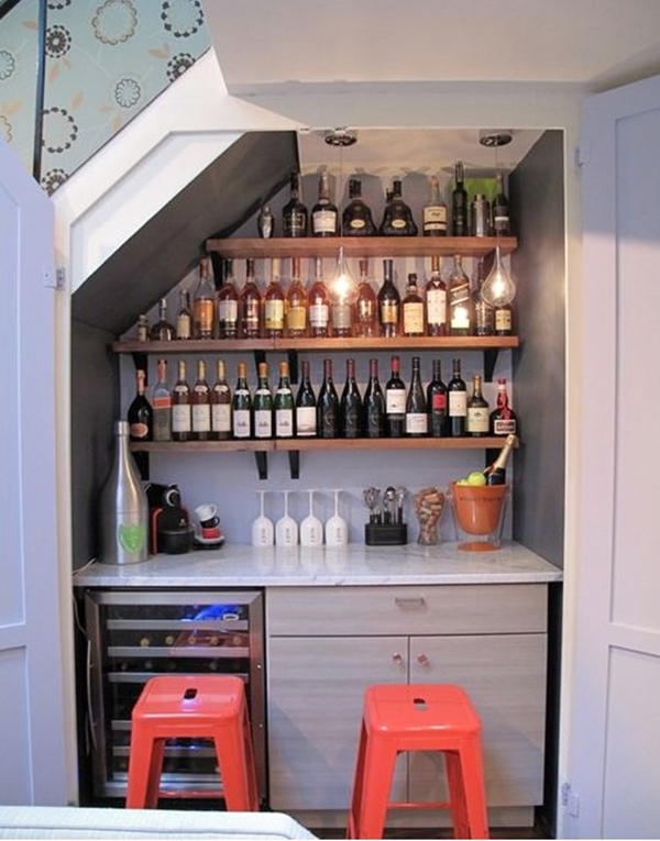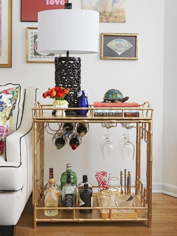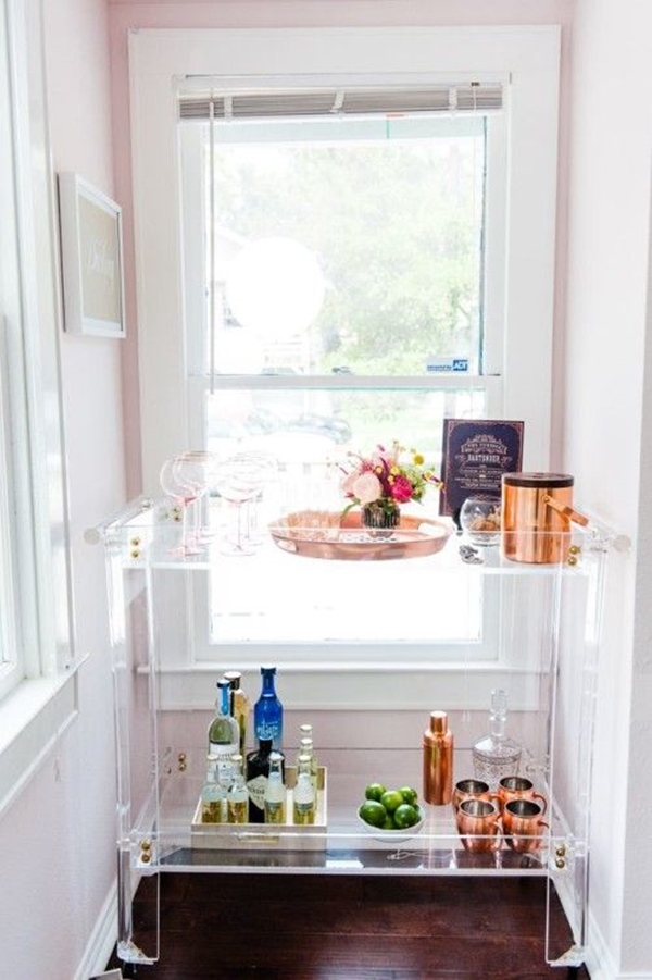 คำตอบก็ง่ายนิดเดียว พื้นที่เล็ก เราก็ทำบาร์ขนาดเล็กกันสิ ดังนั้น ‘มินิบาร์’ คือคำตอบที่ดีที่สุดสำหรับกรณีนี้ เพียงแค่มีพื้นที่สักบริเวณ ไม่ต้องเยอะ มีอุปกรณ์ให้พร้อม เช่น แก้วน้ำ แก้วไวน์ มีตู้หรือรถเข็นเครื่องดื่มโปรดเตรียมไว้ เอาเท่าที่ชอบดื่มเป็นประจำก็พอ ตกแต่งอีกนิดให้สวยงาม เท่านี้ก็สามารถทำมินิบาร์ในบ้านตัวเองกันได้ล่ะ ว่าแต่จะตกแต่งยังไงได้บ้าง ลองมาหาแรงบันดาลใจไปกับไอเดียด้านล่างเหล่านี้กันดูสิคะ