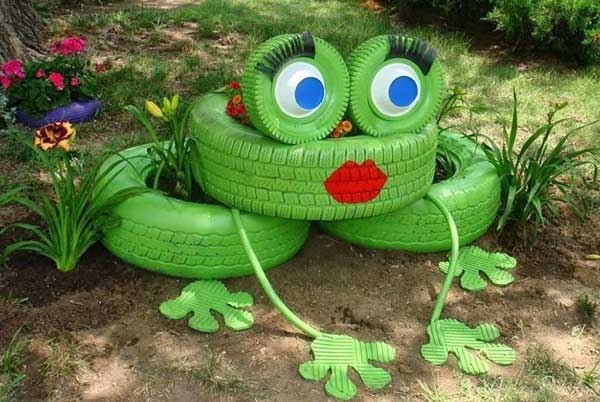 10. ใช้ยางเก่ามาเพ้นท์สี ทำเป็นกบสีเขียว ตกแต่งไว้ในสวนกันก็ได้