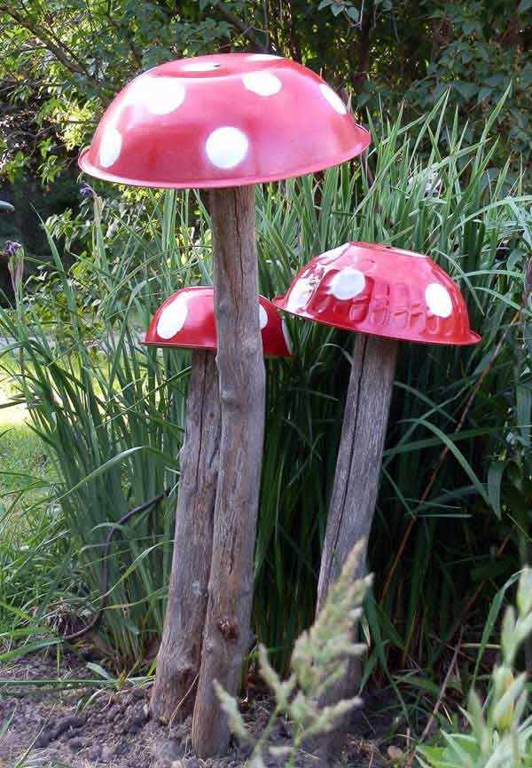 16. แค่ท่อนไม้กับฝาชี หรือ ชาม กะละมัง พอคว่ำไว้ด้านบนไม้ ก็กลายเป็นต้นเห็ดสวยๆ แต่งสวนแล้วล่ะ