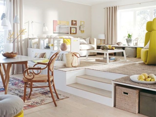 การตกแต่งภายในบ้านที่มีขนาดเล็ก เพราะมีพื้นที่น้อย หากเราตกแต่งในระนาบเดียวกัน ก็อาจทำให้ห้องดูอึดอัดและเต็มไปด้วยเฟอร์นิเจอร์ต่างๆ มากมายก็เป็นได้ แต่หากเราเปลี่ยน ลองมาตกแต่งให้เฟอร์นิเจอร์ต่างๆ มีการแบ่งพื้นที่กัน อยู่คนละระดับ ก็อาจทำให้ภายในบ้านสวยและดูเป็นสัดส่วนได้มากขึ้นนะคะ แถมยังทำให้ดูมีมิติอีกด้วยล่ะค่ะ