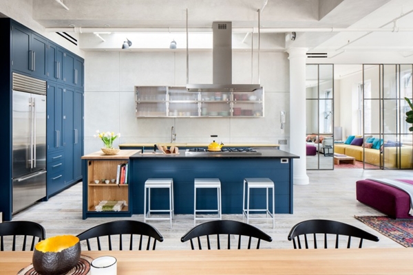ห้องนั่งเล่นตกแต่งร่วมกับเฟอร์นิเจอร์ไม้และเฟอร์นิเจอร์สไตล์ร่วมสมัยที่มีสีสันสดใส โซฟาสีน้ำเงิน ม่วง เหลือง มิกซ์กันอยู่คนละมุมอย่างลงตัว สวยงาม ห้องนั่งเล่นบรรยากาศสดใสๆ ชวนให้รู้สึกอยากพักผ่อนในห้องนี้ตลอดเวลา ส่วนห้องครัวนั้นใช้เฟอร์นิเจอร์ครัวสีน้ำเงิน ตกแต่งร่วมกับเฟอร์นิเจอร์ไม้ ดูสวยและลงตัวจริงๆ เลยล่ะค่ะ เห็นแล้วก็อยากมีบ้านที่ตกแต่งโทนสีสดใสๆ แบบนี้บ้างจริงๆ เลยนะ ใครที่ชอบไอเดียนี้ ลองเก็บไปประยุกต์ใช้ตกแต่งภายในบ้านกันดูสิคะ