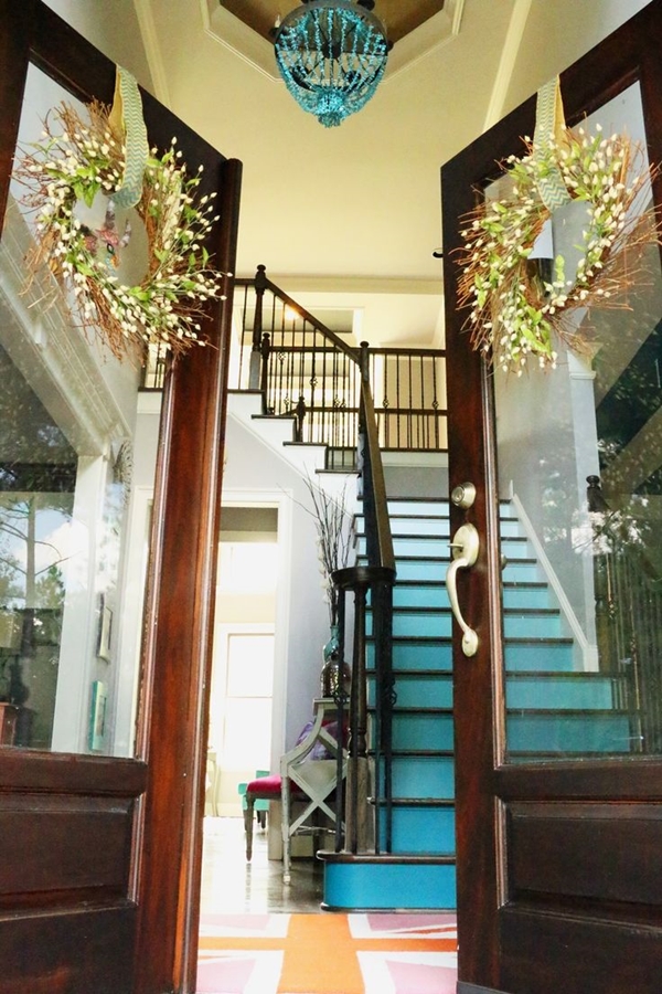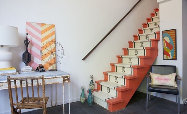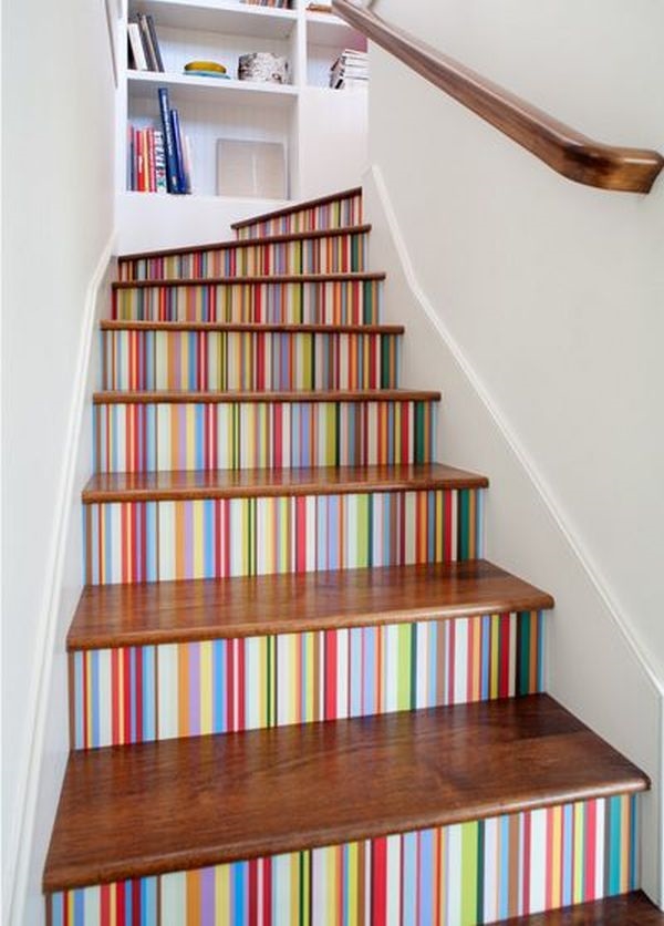ไอเดียที่ 3 เพ้นท์สีสันลงไปที่ขั้นบันไดแต่ละขั้น ไอเดียนี้ก็ไม่ยาก