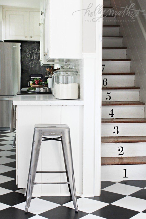 ไอเดียที่ 2 มานับเลขให้ขั้นบันไดกันเถอะ อีกไอเดียที่ทำให้บันไดบ้านโดดเด่น โดยการเพ้นท์ขั้นบันไดเป็นตัวเลข