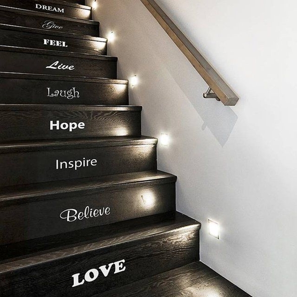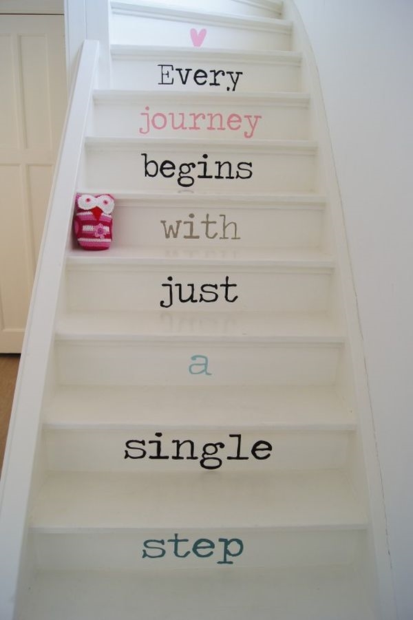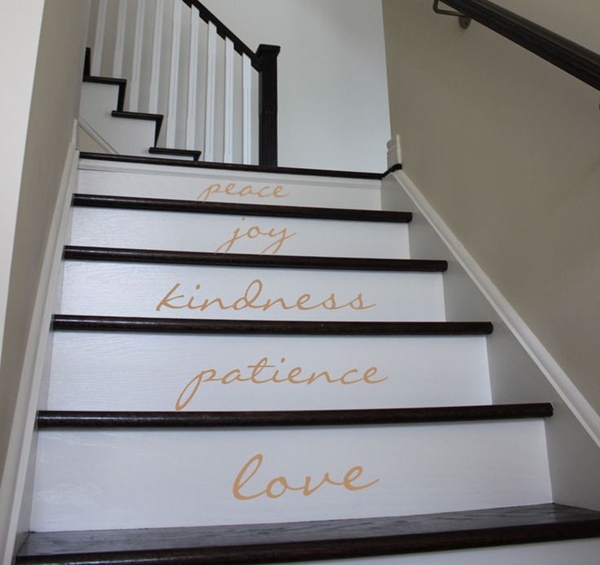 ไอเดียแรก เขียนข้อความให้กับขั้นบันไดทีละขั้น ก็เป็นการเติมสไตล์ให้กับบ้านได้แล้ว
