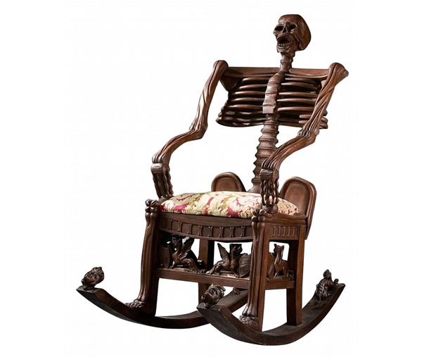 7. เก้าอี้หัวกะโหลก Hand Carved “Momento Mori” Skeleton Rocking Chair
