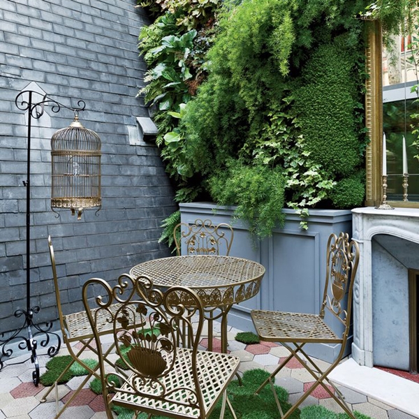 ลองปลูกต้นไม้ให้เป็นแนวกำแพงไปเลยแบบนี้ ก็ดีนะ ใช้พื้นที่ไม่มาก แล้วหาเก้าอี้และโต๊ะมาทำพื้นที่นั่งเล่นนอกบ้านสบายๆ เวลาพักผ่อนก็ออกมานั่งชมสวนสวยๆ ให้รู้สึกสดชื่นกันแบบนี้ก็ได้นะคะ