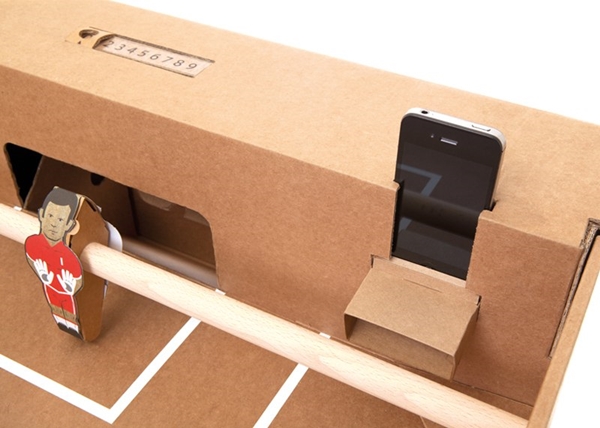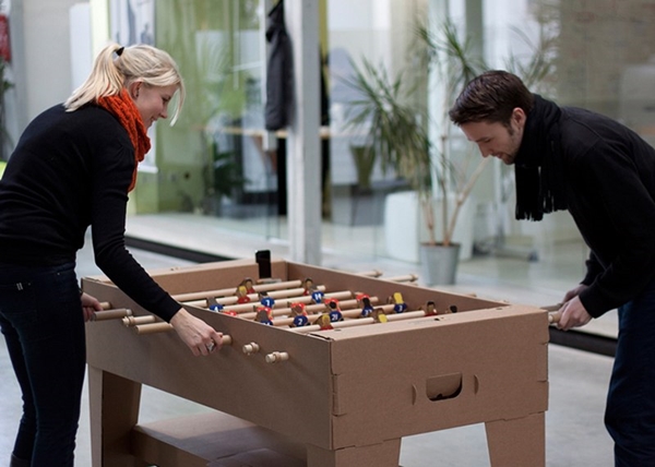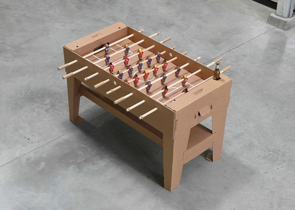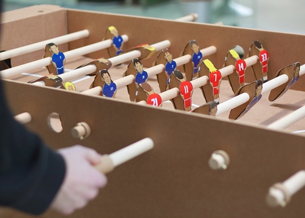 1. โต๊ะเล่นฟุตบอลจากลังกระดาษ นอกจากเล่นสนุกแล้วยังเป็นที่วางสมาร์ทโฟนและเครื่องดื่มได้ด้วยนะ