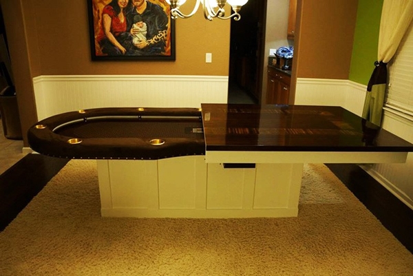 9. โต๊ะรับประทานอาหารโต๊ะนี้ทรงสี่เหลี่ยมผืนผ้า เปลี่ยนเป็นโต๊ะทรงวงรีของโต๊ะเล่นโปกเกอร์ได้ด้วยล่ะ