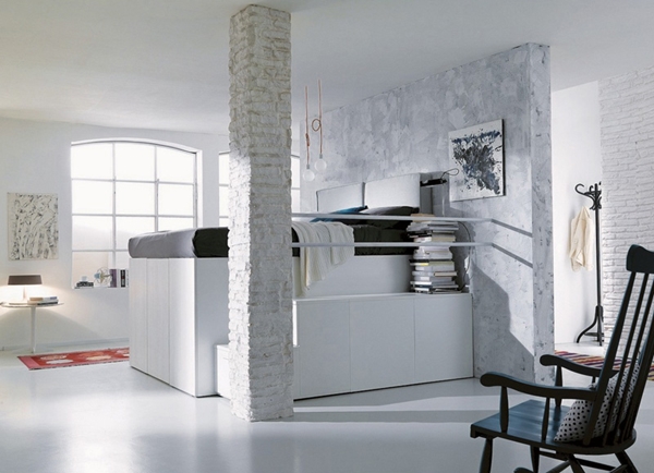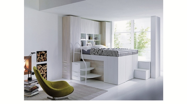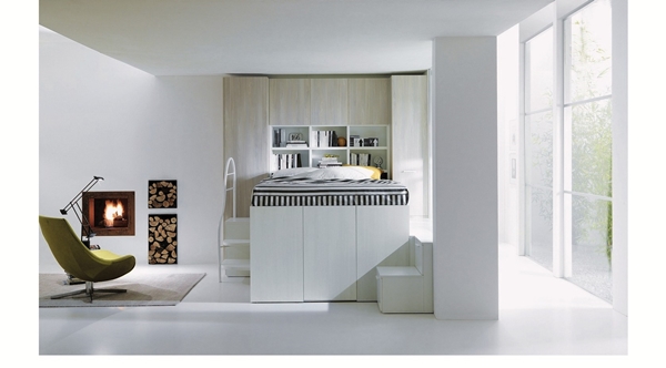 โดยเตียงนอนนี้ ทาง บริษัท Italian manufacturer Dielle ออกแบบมาเพื่อสำหรับคนที่อาศัยอยู่ในคอนโดมิเนียม อพาร์ทเม้นท์ หรือคนที่มีพื้นที่ห้องจำกัด เพราะจะสามารถประหยัดพื้นที่ได้เยอะทีเดียวเลยล่ะค่ะ เป็นทั้งเตียงนอนแบบยกพื้นสูง มีบันไดพาขึ้นด้านบนเตียง ขณะเดียวกันด้านใต้เตียงนอน ก็จะเป็นพื้นที่ของตู้เสื้อผ้าซ่อนอยู่ ให้คุณเก็บเสื้อผ้าเอาไว้ได้ นอกจากนี้พื้นที่ด้านข้างบันได ยังเป็นตู้ลิ้นชักให้คุณเก็บของอีกด้วยล่ะ เรียกได้ว่าประหยัดพื้นที่สุดๆ แถมมากด้วยประโยชน์ใช้สอยในชิ้นเดียวเลยทีเดียวนะเนี่ย