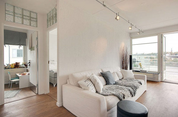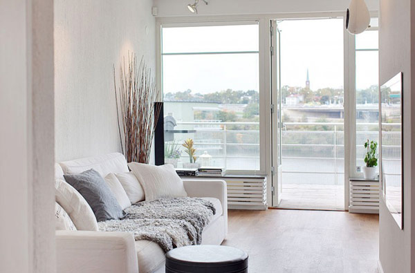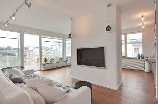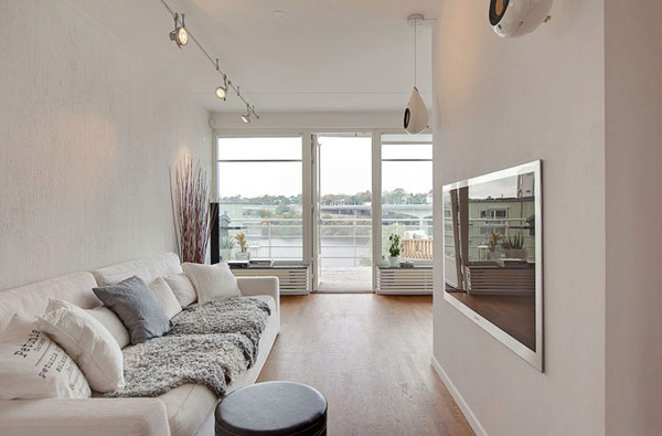 ภายในห้องตกแต่งด้วยโทนสีขาว สไตล์สแกดิเนเวียน ดูอบอุ่นสวยงาม น่าอยู่ พื้นที่ภายในห้องถูกแบ่งเป็น 3 โซน โซนห้องนั่งเล่น, ห้องครัวและห้องอาหาร และอีกโซนจะเป็นห้องนอน มีระเบียงสำหรับนั่งเล่นพักผ่อน ชมวิว ในจุดที่ดีที่สุดของตึกอีกด้วย เนื่องจากตัวห้องตกแต่งด้วยกระจก จึงทำให้อพาร์ทเม้นท์ห้องนี้ดูกว้างขวาง โล่ง สบายตา หากคุณยังจินตนาการไม่ออก มาชมภาพที่เรานำมาฝากกันเลยค่ะ