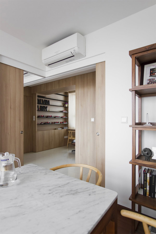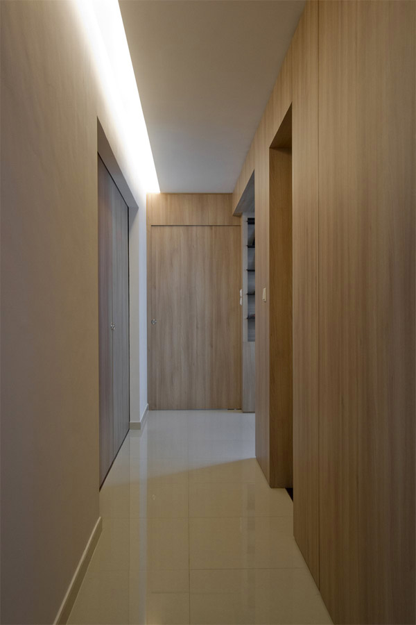 ห้องนี้ตั้งอยู่ใจกลางความเจริญและแสงสีของประเทศสิงคโปร์ ได้รับการออกแบบจากสถาปนิก AO Studios ภายในห้องตกแต่งด้วยโทนสีไม้เนื้ออ่อน แบ่งออกเป็นห้อง โดยมีการกั้นส่วนแต่ละห้องอย่างมิดชิด จนแทบจะดูไม่ออกเลยว่ามีห้องมากมายอยู่ภายใน สถาปนิกออกแบบได้เนียน เก๋ จนดูเหมือนเป็นห้องสตูดิโอเล็กๆ ธรรมดา แต่เมื่อเข้าไปแล้วจะเห็นได้ว่ามีอีกหลายห้องเลยล่ะค่ะ ประตูของแต่ละห้องที่เชื่อมหากัน ออกแบบให้เป็นประตูบานเลื่อน เมื่อเปิดไปจะพบห้องนอน, ห้องทำงาน,ห้องครัว,ห้องน้ำ มีความเป็นส่วนตัว เรียกได้ว่าเล่นซ่อนหา ก็แทบงงเหมือนกันละคะ เฟอร์นิเจอร์ภายในห้องตกแต่งไว้อย่างเรียบง่าย มีน้อยชิ้น ตกแต่งด้วยสีเอิร์ธโทน ให้ความรู้สึกอบอุ่น ว่าแล้วเรามาชมกันเลยค่ะ