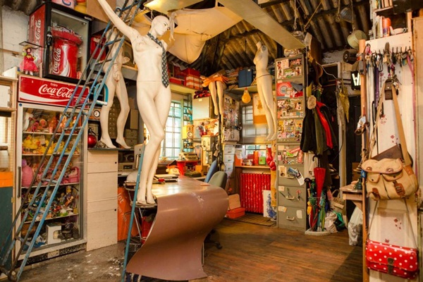 ภายในตกแต่งโดดเด่น บางบริเวณเต็มไปด้วยข้าวของมากมายเต็มไปหมด ถูกแขวนไว้บนเพดานห้อยลงมารวมตัวกัน มีทั้งหุ่นโชว์เสื้อผ้ามากมายห้ออยู่ ของเยอะแยะเต็มไปหมด ติดข้อความมากมาย ซึ่งหากตกแต่งไม่มีศิลปะ คงไม่ต้องพูดถึงเลยล่ะค่ะ มันคงจะดูรกสุดๆ ทีเดียว แต่เนื่องจากบ้านหลังนี้ตกแต่งดูมีศิลปะ ของรกๆ มากมายจึงถูกนำมารวมกันได้สวย อาร์ตอย่างมีเสน่ห์ ดูแล้วสวยงามมากกว่ารก ตกแต่งภายในส่วนอื่นๆ ร่วมด้วยสไตล์วินเทจ เฟอร์นิเจอร์ดั้งเดิมทำให้ภายในบ้านนี้ดูน่าหลงใหล ตกแต่งร่วมของตกแต่งอื่นๆ มากมายรวมกันออกมาแล้วนั้นสวยงามและมีเอกลักษณ์อย่างที่เราได้เห็น ว่าแล้วเราก็ไปชมกันเต็มๆ กับบ้านสวยมีศิลปะ จัดตกแต่งได้มีเสน่ห์หลังนี้กันดีกว่าค่ะ ไปชมกันว่าสวยและอาร์ตขนาดไหน