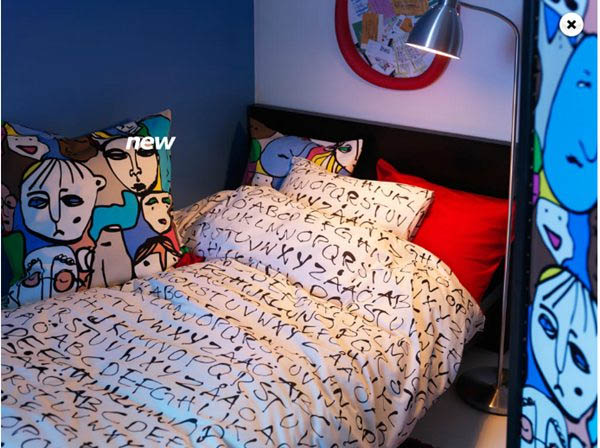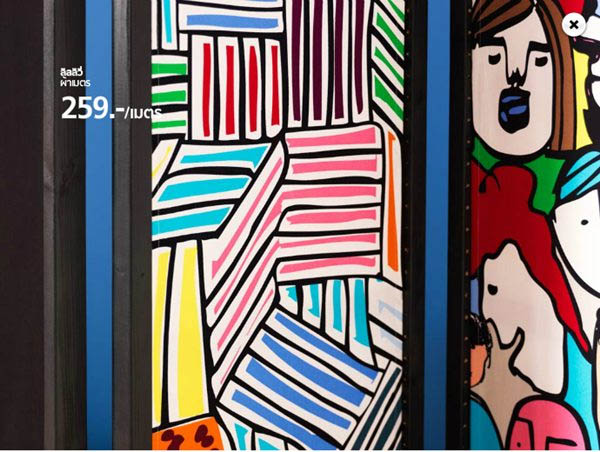 ไอเดียตกแต่งห้องด้วยผ้าที่มีสีสันสดใส ลวดลายศิลปะกราฟฟิตี้ชิ้นนี้ออกแบบโดยดีไซเนอร์ Beckmans College of Design ผ้าเมตรรุ่น ลิลลีวี่ เป็นผลงานจากความร่วมมือกันระหว่าง IKEA และ Beckmans College of Design ในกรุงสต๊อกโฮล์ม โดยมี นศ.จำนวน 22 คน ได้เข้าร่วมเวิร์คช๊อปเพื่อร่วมกันออกแบบผลงานศิลปะที่นำมาทำเป็นลวดลายผ้า ผลที่ได้คือสินค้าที่มีลวดลายเป็นเอกลักษณ์ สีสันสดใส ผลงานชิ้นนี้ได้สะท้อนถึงความสามารถของคนรุ่นใหม่ที่มีพลังความคิดสร้างสรรค์ได้อย่างน่าสนใจค่ะ ว่าแล้วเรามาชมกัน และถ้าอยากเห็นของจริงก็ลองไปชมกันได้ที่ IKEA บางนานะค่ะ