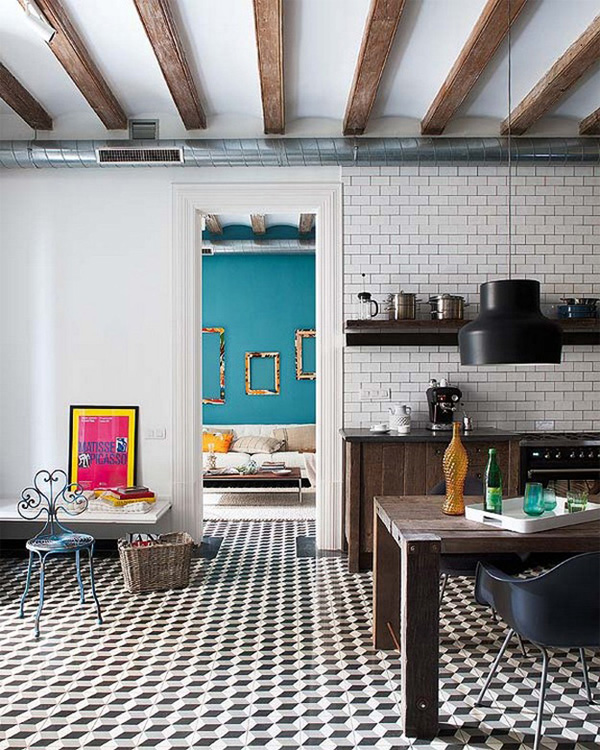บ้านหลังนี้ตั้งอยู่ที่ Barcelona ได้รับการออกแบบตกแต่งภายในโดยบริษัท  Egue y Seta พวกเขาได้สร้างสรรค์ห้องต่างๆ โดยการตกแต่งเฟอร์นิเจอร์ใหม่ ทาสีห้องใหม่ แต่ยังคงความงามของเนื้อไม้เดิมไว้ ที่โดดเด่นที่สุดเห็นจะเป็นห้องครัวค่ะ เพราะพวกเขาคงเคาว์เตอร์ไม้ไว้ และผสมผสานเฟอร์นิเจอร์ ชุดครัวในสไตล์โมเดิร์นทันสมัยลงไป และตกแต่งด้วยโคมไฟดีไซน์เก๋ ทำให้ห้องนี้ดูโดดเด่นสะดุดตา และมีเสน่ห์ของความเป็น retro อย่างเต็มตัว ว่าแล้วเรามาชมห้องอื่นๆ ภายในบ้านหลังนี้กันเลยค่ะ
