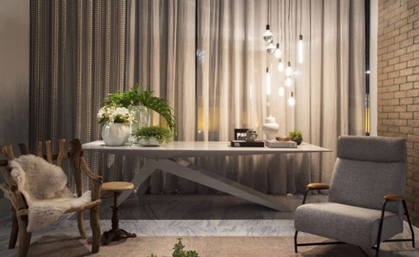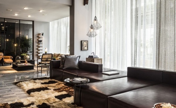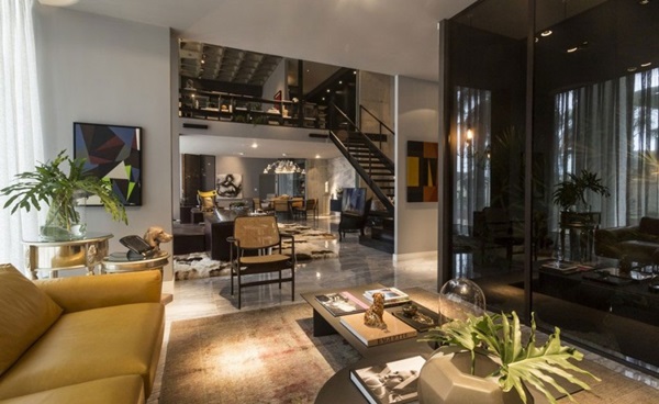 ภายในบ้านหลังนี้ตกแต่งโดยรวมแล้วเน้นไปที่โทนสีเข้ม เฟอร์นิเจอร์หนัง ของตกแต่งที่หรูหราและเก๋ไก๋ มีเอกลักษณ์ ตกแต่งภายในออกมาดูแล้วทันสมัย แต่ขณะเดียวกันก็ชิค และสะดวกสบาย ห้องรับแขกกว้างขวาง มีหลายมุมให้เลือกพักผ่อน แต่ละมุมก็มักจะตกแต่งด้วยต้นไม้ต้นเล็กๆ ในกระถาง เติมสีเขียวให้ความสดชื่นแก่บริเวณนั้นๆ ภาพศิลปะโดดเด่นติดตามกำแพงห้อง ห้องครัวและห้องรับประทานอาหารก็ตกแต่งออกมาสวยงาม นอกจากนี้ยังมีห้องนอน ซึ่งตกแต่งอยู่บนชั้นสอง เดินขึ้นบันไดสีเข้มไปชั้นบนก็จะพบกับห้องนอนโทนสีดำ เทา ที่สวยโมเดิร์นทีเดียวเลยล่ะค่ะ น่าจะโดนใจใครหลายๆ คนได้ไม่น้อยเลยไอเดียนี้ ว่าแล้วก็ลองไปชมภาพทั้งหมดกันดู ใครที่ชอบไอเดียตกแต่งบ้านสไตล์ลอฟต์สวยๆ ที่มีเอกลักษณ์ มีหลายสไตล์สวยๆ ทั้งแอบหรู โมเดิร์น และชิคไปในตัว ก็ลองเก็บไอเดียนี้ไปตกแต่งบ้านกันดูค่ะ