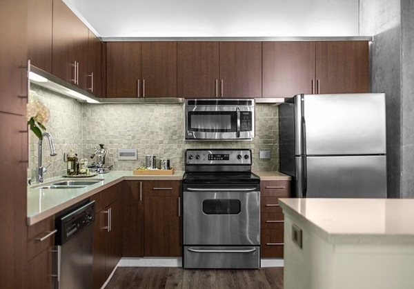 บริเวณห้องนั่งเล่นตกแต่งอย่างโปร่ง สบายตา มีหน้าต่างบานใหญ่ เผยให้เห็นวิวเมืองและปล่อยให้แสงแดดลอดผ่านเข้ามาภายใน ตกแต่งกำแพงด้วยภาพผ้าใบลายตู้หนังสือ ดูเก๋ไก๋ดีทีเดียวเลยล่ะค่ะ มองเผินๆ นึกว่าตู้หนังสือตกแต่งอยู่จริงๆ ห้องครัวตกแต่งด้วยเฟอร์นิเจอร์ครัวร่วมสมัยที่ทำมาจากไม้ ห้องนอนตกแต่งแบบร่วมสมัยที่สวยงาม โทนสีที่สบายตา เห็นแล้วน่าพักผ่อนมากทีเดียวเลยค่ะ