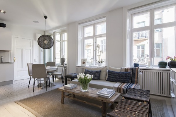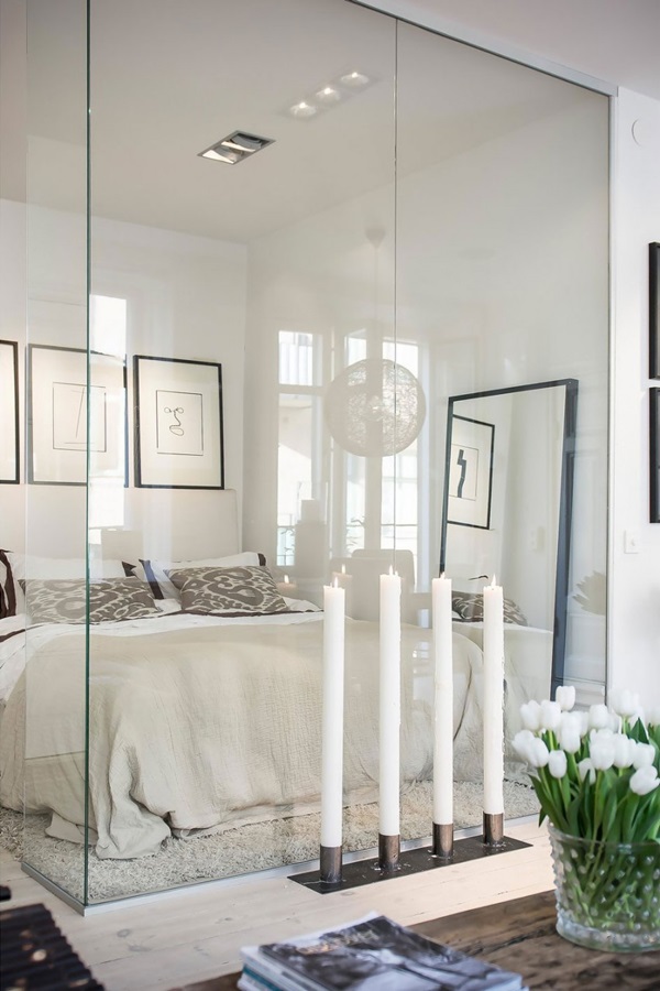 สำหรับในวันนี้เราจะพาคุณไปชมไอเดียตกแต่งห้องคอนโดเล็กๆ แต่ตกแต่งออกมาได้อย่างสวยงาม น่าอยู่ในสไตล์สแกนดิเนเวียไว้เป็นไอเดียสำหรับใครที่ยังหาไอเดียตกแต่งห้องคอนโดของคุณเองไม่ได้ ก็ลองมาชมไอเดียนี้ดูค่ะ ภายในตกแต่งด้วยโทนสีอ่อน สบายตา บริเวณห้องนอนกั้นสัดส่วนด้วยกระจก ทำเป็นกรอบห้อง สามารถมองเห็นบริเวณอื่นๆ ของห้องได้ มีห้องนั่งเล่น ห้องครัว
