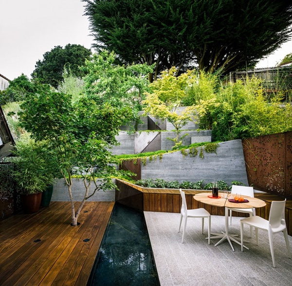พามาชมไอเดียแต่งสวนสวยๆ กันบ้างคะ สำหรับวันนี้ เป็นไอเดียการจัดสวนสวยที่ชื่อว่า Hilgard Garden สวนสีเขียวของที่พักแห่งหนึ่งใน Berkeley รัฐ California ประเทศสหรัฐอเมริกา จัดเป็นสวนในลักษณะสวนญี่ปุ่น Zen แบบเป็นขั้นบันไดเล่นระดับ ซิกแซกแบบเก๋ไก๋ด้วยวัสดุของประเภท คือ คอนกรีตและไม้ รอยต่อของวัสดุทั้งสอง เมื่อเวลากลางคืน จะมีแสงไฟลอดมาอย่างสวยงามอีกด้วยล่ะค่ะ เป็นสวนสวยที่ตกแต่งได้ร่มรื่นมากๆ เลยทีเดียวนะคะ นอกจากสวนแล้วยังมีมุมพักผ่อนตกแต่งอยู่ด้วย ซึ่งก็เหมาะดีแล้ว เพราะไม่ว่าจะมองไปทางไหนก็เห็นแต่พื้นที่สีเขียวให้รู้สึกปลอดโปร่ง สดชื่นได้ดีทีเดียว ต้องยกความดีให้กับผู้ที่ตกแต่งออกแบบจัดสวนนี้อย่างบริษัท Mary Barensfeld Architecture กันนั่นเองค่ะ ว่าแล้วก็ไปชมกันดูเป็นไอเดียเลยค่า เราเชื่อว่าคุณเองจะต้องชอบเหมือนเราแน่ๆ