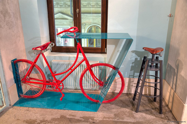 บาร์แห่งนี้มีชื่อว่า Bicycle Bar ตั้งอยู่ที่ Bucharest, Romania ภายในร้านตกแต่งด้วยการใช้ชิ้นส่วนของรถจักรยาน ไม่ว่าจะเป็นเบาะ, แฮนด์บังคับ,ไฟรถ หรือแม้แต่ในส่วนของโซ่ ล้วนถูกนำมาตกแต่งประดิษฐ์ให้กลายมาเป็นส่วนหนึ่งในร้าน Bicycle Bar เป็นไอเดียที่ร่วมสมัย และสร้างสรรค์เป็นอย่างยิ่งเพราะนอกจาก รถจักรยานเสียๆ ที่ถูกมองข้าม โยนทิ้งจนกลายเป็นขยะเหล่านั้น วันนี้บาร์แห่งนี้ได้บูรณะสร้างสรรค์ไอเดียเจ๋งๆ จนแทบจะเรียกได้ว่าเป็นพิพิธภัณฑ์ งานแสดงศิลปะชิ้นส่วนจักรยานไปเสียแล้วค่ะ เอาเป็นว่าเรามาชมร้านแห่งนี้กันเลยดีกว่าแล้วคุณจะต้องประทับใจ