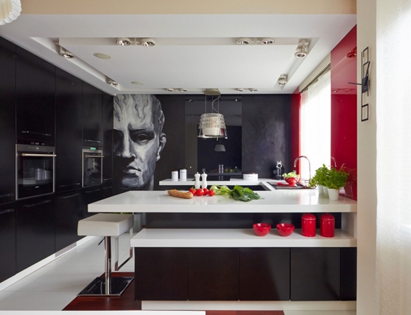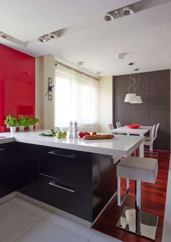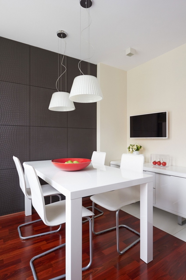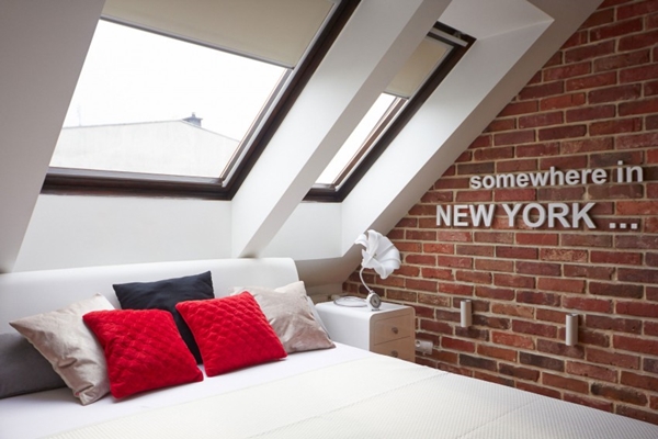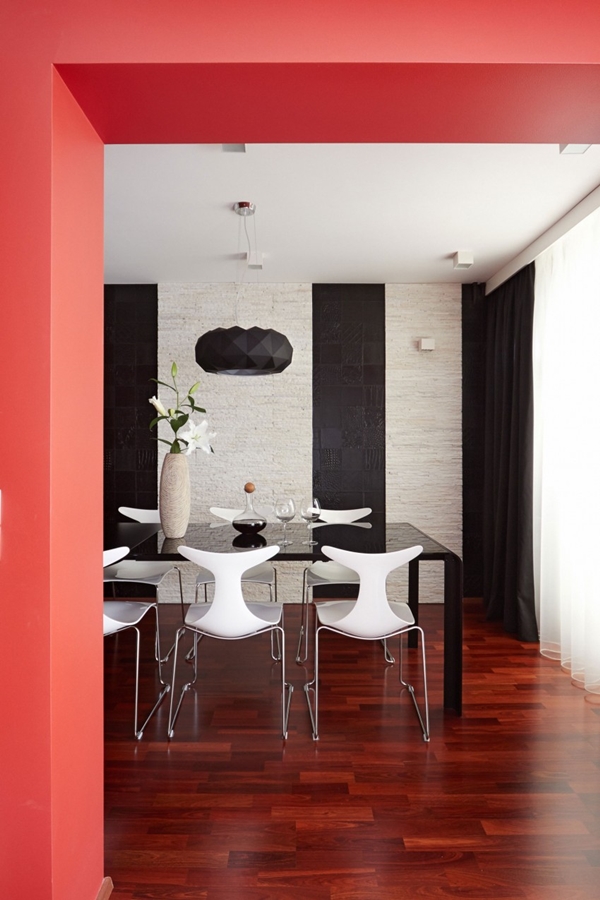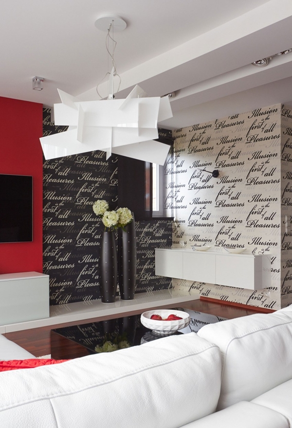 ภายในอพาร์ทเม้นท์ห้องนี้ ไม่เพียงแต่โดดเด่นด้วยโทนสีดำ แดง ขาวเท่านั้นแล้ว ยังตกแต่งไปด้วยผลงานศิลปะสุดอาร์ต ทั้งภาพจิตรกรรมฝาผนัง วอลเปเปอร์ลายเก๋ที่เป็นลายข้อความ รูปปั้นคนสีขาว โคมไฟโมเดิร์นเก๋ๆ ตกแต่งมิกซ์กับเฟอร์นิเจอร์สีขาวและดำ ซึ่งก็เข้ากันดีกับพื้นไม้ หรือ กำแพงอิฐเป็นอย่างดี ดูเป็นอพาร์ทเม้นท์ที่สะดวกสบาย ทันสมัย และบรรยากาศน่าอยู่ไม่เบาเลยล่ะค่ะ สีสันที่ใช้ตกแต่ง ดูทันสมัย อีกทั้งยังทำให้เห็นแล้วรู้สึกสดใส กระตือรือร้นได้ดีทีเดียวด้วยล่ะค่ะ ว่าแล้วก็ลองไปชมไอเดียนี้กันดูสิคะ ใครชอบก็สามารถเก็บไว้ประยุกต์ตกแต่งภายในบ้านของคุณกันนะ