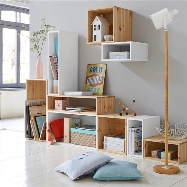 นอกจากนี้คุณอาจจะนำชั้นวางของกล่องไปตกแต่งภายในห้องอื่นๆ ได้อีกนะคะ ลองประยุกต์กันดู รูปแบบตกแต่งชั้นวางของกล่อง ก็สามารถเลือกทั้งแบบซ้อนกันเป็นกลุ่มหรือแยกกันชัดเจน ก็ได้ ลองเก็บไว้เป็นตัวเลือกกันดูค่ะ