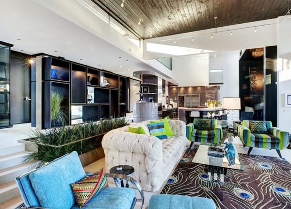 ห้องนั่งเล่นแต่งด้วยชั้นวางของกล่อง ใช้เก็บหนังสือ ของตั้งโชว์ต่างๆ แล้วดูโมเดิร์นดีจริงๆ เลยนะ