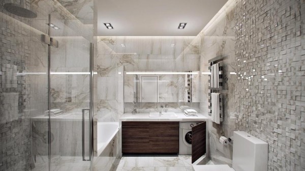 พื้นปูนเปลือยช่วยให้ภายในห้องดูมีบรรยากาศที่สบายๆ มากขึ้น ตกแต่งภายในแบบเรียบง่าย แต่ขณะเดียวกันก็สวยงามและดูเรียบหรูไม่น้อยเช่นเดียวกันค่ะ ไม่ว่าจะเป็นบริเวณห้องนอนที่ดูเรียบๆ แต่ของตกแต่งนี้เลิศไม่น้อย ทำให้ห้องแอบหรูหรา หรือบริเวณห้องน้ำที่ตกแต่งในโทนเรียบๆ ด้วยสุขภัณฑ์สีขาว แต่โดดเด่นด้วยกำแพงโมเสกระยิบระยับที่ทำให้ห้องน้ำนั้นดูหรูขึ้นทันที เป็นไอเดียตกแต่งที่แต่งภายในไม่มากจนเกินไป แต่สวยงามมากทีเดียวเลยล่ะค่ะ ว่าแล้วก็ไปชมกันดูดีกว่า