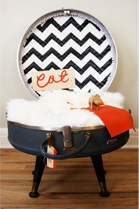 วันนี้เราไอเดียทำที่นอนให้สัตว์เลี้ยงตัวโปรดของคุณ ไม่ว่าจะเป็นหมา หรือแมว วันนี้พวกมันก็จะได้มีที่นอนอันสวยเก๋ ไม่ซ้ำใครด้วยวิธีการทำง่ายๆ ที่คุณสามารถทำเองได้ไม่ยากค่ะ ขั้นแรกคุณต้องนำกระเป๋าเดินทางใบเก่า ที่ไม่ใช้แล้วนำมาทำความสะอาด ปัดฝุ่น จากนั้นก็ตกแต่งด้วยเบาะรองนั่งลวดลายเก๋ๆ หรือจะเป็นขนสัตว์เพื่อวคามหรูหรา อันนี้ก็ขึ้นอยู่กับความชอบของแต่ละคนค่ะ เพียงเท่านี้คุณก็จะได้ที่นอนให้เจ้าโปรดของคุณกันแล้ว และยังมีวิธีอื่นๆ อีก ลองไปชมไอเดียที่เรานำมาฝากกันเลยค่ะ