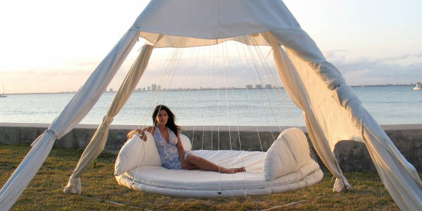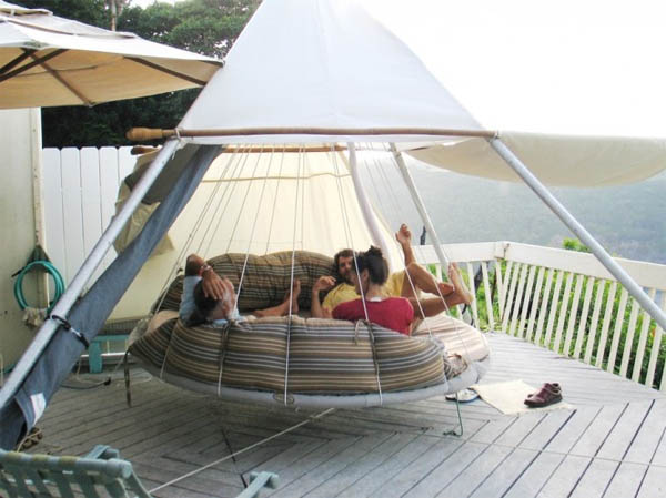 เฟอร์นิเจอร์ดีไซน์ใหม่ของ John Huff ผู้ออกแบบเตียงนอนลอยได้ ด้วยไอเดียสร้างสรรค์และบวกกับความเบื่อการนอนแบบเดิมๆ เขาจึงออกแบบเตียงลอยได้ชิ้นนี้ขึ้นมา นอกจากจะนอนได้ 2 คน ยังสามารถเปลี่ยนที่ติดตั้งได้ง่ายๆ หากคุณอยากเปลี่ยนบรรยากาศในการนอน ก็เพียงนำเตียงลอยได้นี้ไปติดตั้งไว้ในที่ที่ต้องการ และชวนเพื่อนๆ มาร่วมสนุกเม้าท์มอยกันเพลินๆ ได้ เหมือนชิงช้ายักษ์ยังไงยังงั้นเลยล่ะค่ะ ว่าแล้วเรามาชมความสามารถของเตียงชิ้นนี้กัน