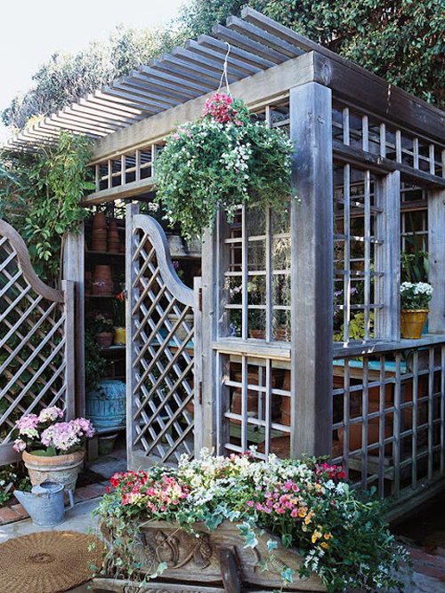 วันนี้มีไอเดียในการจัดทำโรงเรือนในสวนมาฝากคนที่ชื่นชอบการปลูกต้นไม้ ดอกไม้ค่ะ หากบ้านของคุณมีพื้นที่กว้างพอสำหรับจัดทำโรงเรือนเก็บอุปกรณ์ทางการเกษตร ก็จะดีไม่น้อยเลยทีเดียวคะ เพราะอุปกรณ์หลายต่อหลายอย่างก็มีราคาแพง หากเสียดาย ตากทิ้งไว้ให้โดนแดดโดนฝนสนิมก็จะขึ้น น่าเสียดายและต้องเสียเวลามาทำความสะอาดกันใหม่อีก สู้เก็บไว้ในโรงเรือนรับรองปลอดภัยแถมเวลาจะหาอุปกรณ์อะไรก็ง่ายขึ้นอีกเยอะเลยค่า เราลองมาชมไอเดียการทำโรงเรือนดูนะคะ