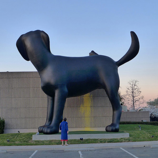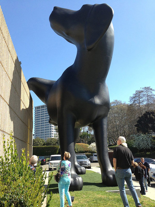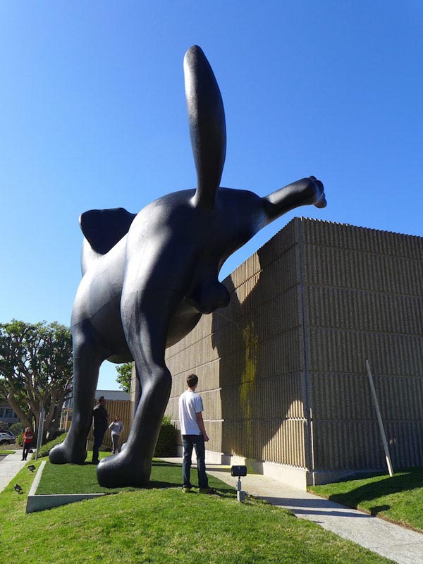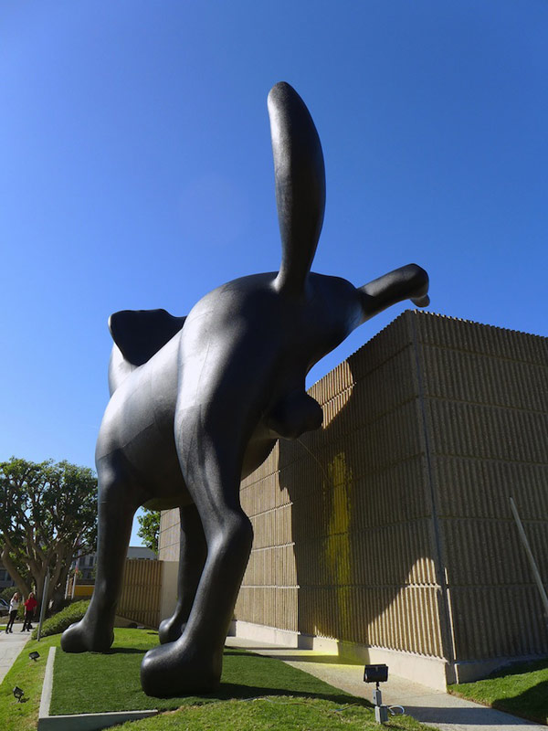 งานประติมากรรมที่โดดเด่นสำหรับคนรักสุนัขคงถูกใจกับสิ่งที่เรากำลังจะนำเสนอในวันนี้แน่ๆ ค่ะ เพราะที่หน้าพิพิธภัณฑ์ The Orange County Museum of Art (OCMA) California เขาได้สร้างงาน ประติมากรรมรูปสุนัข ที่เป็นสุนัขประเภท “Bad Dog” สูงเด่นเป็นสง่าถึง 28 ฟุต ผลงานชิ้นนี้ถูกสร้างขึ้นโดย Richard Jackson  และที่น่าสนใจกว่านั้นคือ เจ้าสุนัขตัวนี้ยังกางขา ยืนฉี่ข้างกำแพงอีกด้วยล่ะค่ะ เห็นแล้วก็อดหัวเราะไม่ได้ คนทำก็คิดไปได้นะค่ะ
