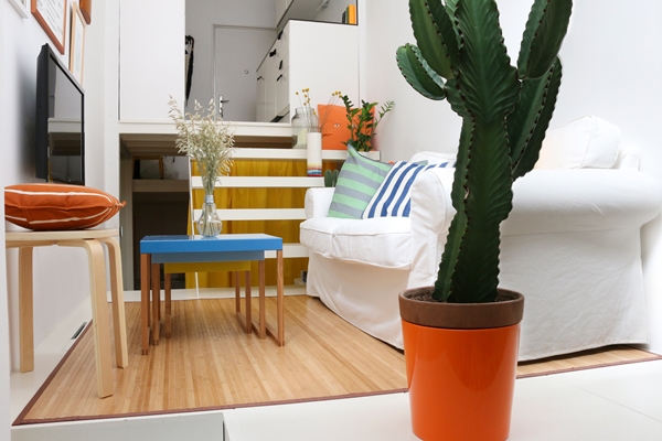 สำหรับตัวอย่างไอเดียแต่งบ้านวันนี้ เรานำบ้านในกรุงมาดริดที่มีขนาดเพียง 21 ตร.ม. มาฝากให้ชมกันค่ะ ขนาดของบ้านเล็กซะจนเหมือนเป็นอพาร์ทเม้นท์แค่ห้องๆ เดียว แต่กลับตกแต่งให้มีความสะดวกสบาย และสิ่งอำนวยความสะดวกให้ใช้สอยครบครันได้ ถือเป็นตัวอย่างดีๆ ที่น่านำมาใช้ประยุกต์และเป็นแรงบันดาลใจไม่เบาเลยล่ะ โดยในบ้านตกแต่งด้วยโทนสีขาว ทำให้ห้องดูสว่างและกว้างกว่าความเป็นจริง ช่วยหลอกตาเราได้ดี ตกแต่งด้วยโทนสีสดใส ของตกแต่งบ้านน่ารักๆ ต้นไม้สีเขียวสดชื่น ร่วมกับการใช้เฟอร์นิเจอร์ร่วมสมัยและเฟอร์นิเจอร์ไม้ บรรยากาศสบายตา อบอุ่น ชวนให้รู้สึกว่านี่เป็นบ้านหลังเล็กที่อบอุ่นและน่าอยู่สุดๆ ไปเลย เห็นแล้วถ้าได้อยู่ก็คงแฮปปี้ไม่เบาทีเดียวเลยล่ะค่ะ ใครที่กำลังมองหาไอเดียแต่งบ้านหลังเล็กอยู่ เก็บไอเดียนี้ไว้ไปประยุกต์กันดูก็ได้นะคะ