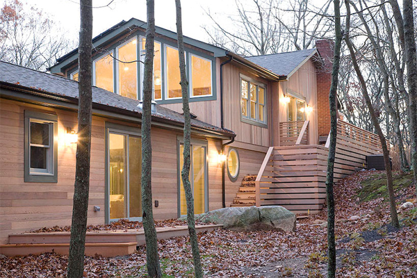 บ้านไม้สวย กลางป่าหลังนี้ตั้งอยู่พื้นที่ mount misery พวกเขาเรียกบ้านหลังนี้ว่า Harbor House ออกแบบโดยบริษัท american architecture studio jandretzki ตัวบ้านมี 2 ชั้น ใช้วัสดุไม้สีเนื้ออ่อน ติดตั้งกระจกขนาดใหญ่เพื่อจะได้มองเห็นวิวทิวทัศน์ด้านนอกที่ร่สมรื่นเย็นตา ด้วยต้นไม้สูงใหญ่นานาพันธุ์ ภายในบ้านตกแต่งโล่งๆ เน้นการใช้เฟอร์นิเจอร์ไม้เช่นกัน แต่ออกแบบเครื่องใช้ภายในบ้านให้ทันสมัย สะดวกสบายในการใช้งาน ภายในบ้านตกแต่งเรียบๆ โล่งๆ ทำให้บ้านดูกว้างขวาง มีพื้นที่ในการใช้สอยมากขึ้นคะ ไม่ว่าฤดูไหนบ้านหลังนี้ก็จะมีความโดดเด่นในตัวเองเสมอ เพราะอยู่ท่ามกลางป่าเขา และใบไม้ที่เปลี่ยนสีในแต่ล่ะฤดูกาลนั่นเอง