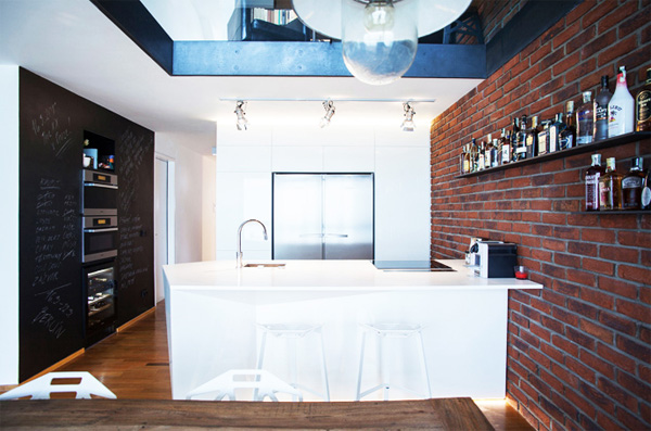 บ้านหลังนี้ตกแต่งด้วยบริษัท B2 Architecture ในแบบโมเดิร์นลอฟต์ เครื่องใช้ภายในบ้านตกแต่งอย่างเรียบง่าย ทันสมัย อย่างเช่นห้องครัว ตกแต่งด้วยชุดครัวบิ้วอิน เรียบง่ายและดูดี โดดเด่นด้วยผนังอิฐสีส้มที่ยังความงามแบบเดิมๆ ไว้ ส่วนห้องนอนตกแต่งในสไตล์ลอฟต์ดิบๆ เฟอร์นิเจอร์น้อยชิ้น เน้นความสวยงามของผนังอิฐสีเก่าไว้ เรียกได้ว่าเป็นการตกแต่งห้องภายในตัว และแยกส่วนห้องแต่งตัวไว้อีกมุมนึง อีกชั้นหนึ่งของบ้านเป้นห้องสตูดิโอตัดแต่งเพลง เป็นห้องทำงานแบบส่วนตั๊ว ส่วนตัว ของเจ้าของบ้านเลยล่ะค่ะ ว่าแล้วเรามาชมความงามของบ้านหลังนี้กันเลย