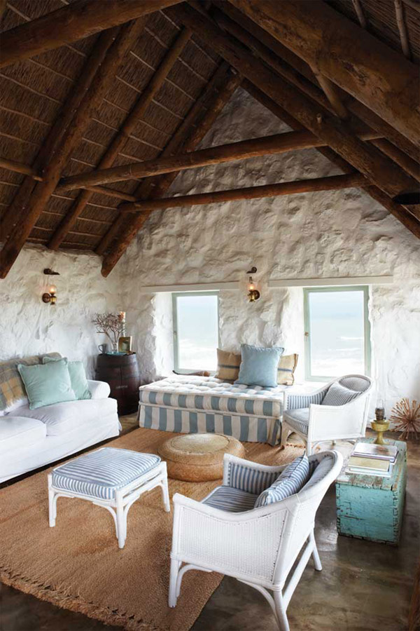 ฟ้าสีคราม แสงแดดอันสดใส ช่างเหมาะที่จะไปพักร้อนริมทะเลจริงๆ ค่ะ หากมีบ้านสวยๆ ริมทะเลสักหลังคงจะเยี่ยมที่สุดในเวลานี้ และวันนี้เรามีภาพบ้านสวยติดชายทะเล ตกแต่งผนังด้านนอกด้วยหิน และทาสีฟ้า ซึ่งช่วยสร้างความอ่อนหวานให้กับตัวบ้านมากขึ้น และเมื่อเข้าไปด้านใน ภายในบ้านตกแต่งไว้อย่างเรียบๆ มีห้องนั่งเล่น ที่ตกแต่งด้วยชุดเก้าอี้โซฟา ตัวหนานุ่มสีขาว โต๊ะวางของที่นำมาตกแต่งทำไม้เก่าๆ ทาสีฟ้าให้เป็นธีมเดียวกับบ้าน ดูน่ารัก ดีไซน์เก๋ ดีค่ะ ภายในห้องนอนตกแต่งด้วยเตียงสีขาว มีโต๊ะหนังสือเล็กๆ ที่หัวมุมห้อง สร้างบรรยากาศให้ดูวินเทจนิดๆ แต่อบอุ่น โครงสร้างผนังภายในบ้านมีลักษณะเป็นหิน ทาด้วยสีขาวทับ เพื่อให้บ้านดูอ่อนหวาน ไม่แข็งเกินไป พื้นเรียบขัดมัน ให้บรรยากาศง่ายๆ สไตล์ดิบๆ แต่แอบแฝงไว้ด้วยความอ่อนหวาน ยังไงไม่รู้บอกไม่ถูกเลยค่ะ ว่าแล้วมาชมกันเองเลยดีกว่า